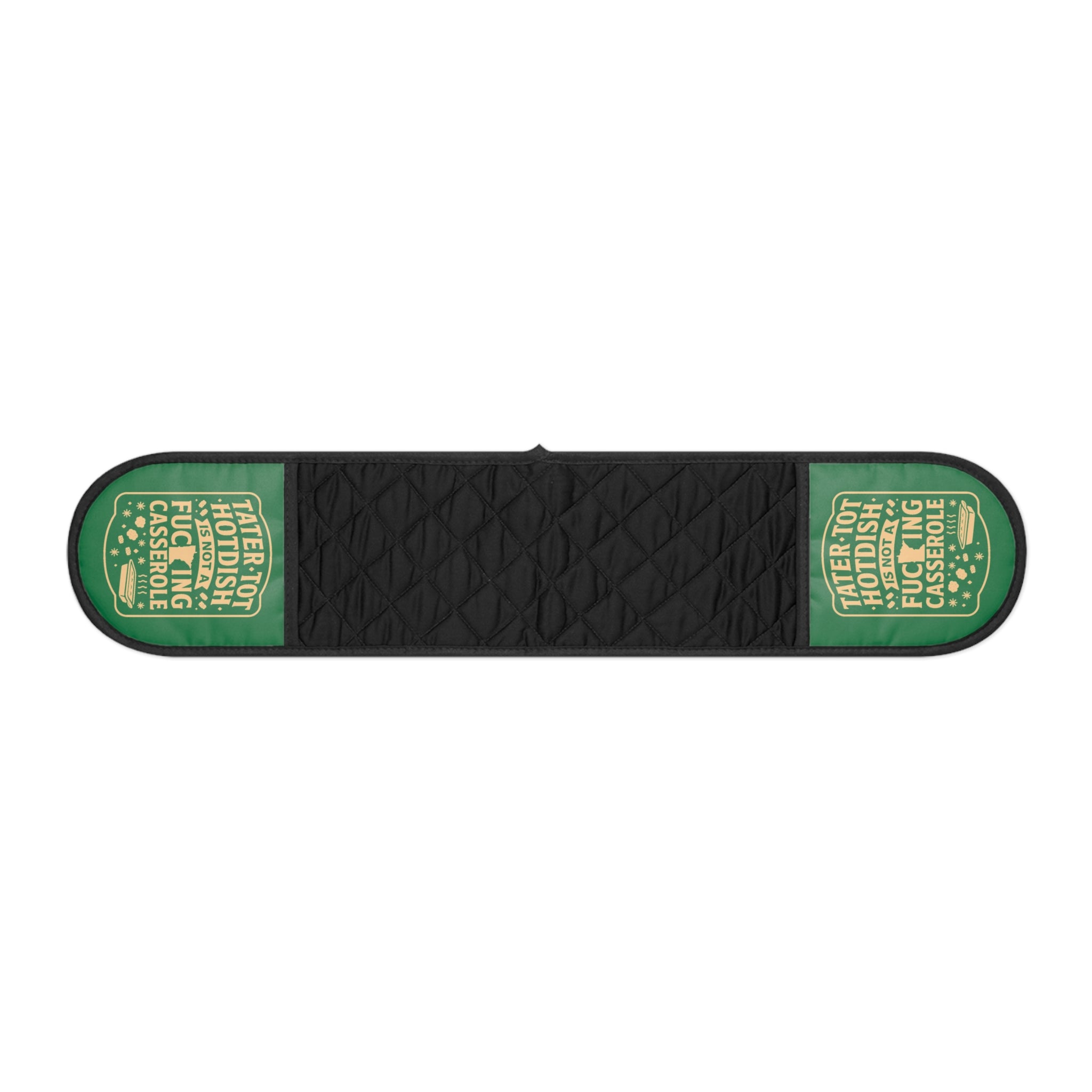 They say “Tater Tot Hotdish is NOT a (you know what) casserole,” and they mean it. Forged by the Northern Gods of pond hockey, deer stands, and Lutheran potlucks with watery coffee, these mitts are built for true Midwestern culinary combat.